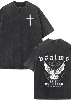 Christian Jesus Faith Over Fear Bible Verse Washed T-shirts Men Women Fashion Vintage Oversized T Shirts Harajuku Cotton T-shirt