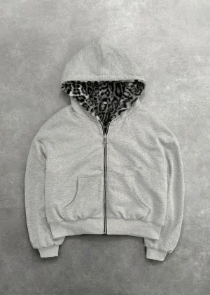 Unisex hoodie hooded sweatshirt with leopard print lining pocket, loose cardigan, zipper sweatshirt, streetwear style