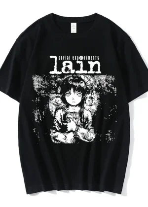 Anime Serial Experiments Lain T-Shirt Men Women Graphic T Shirts Unisex Iwakura Manga Girl Sci Fi Short Sleeve Tee Tops 62463