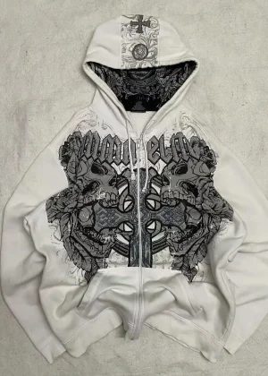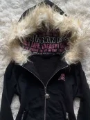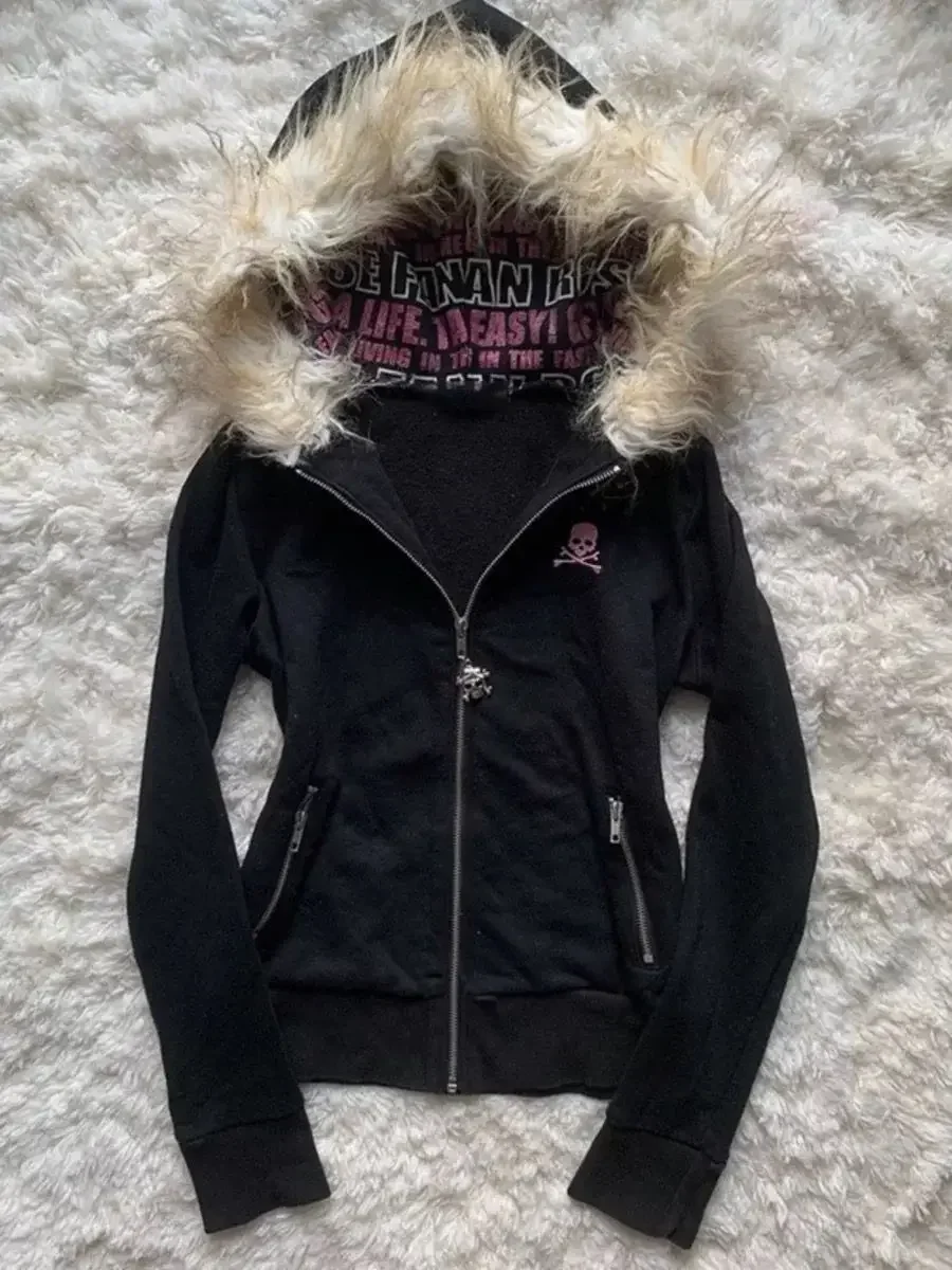 Y2K Black Fur Collar Zipper Sweatshirt Hoodie Sexy Women Sweatshirt Harajuku Goth Letter Graphic Print Slim Coat Winter Clothes
